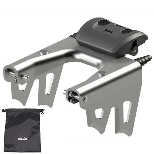 With the Traxion crampon, the days of risky mounting manoeuvres in tough terrain are over. Traxion attachment is simplicity itself with 2 sprung loaded pegs simply popping into the toe assembly without even having to remove the boot from the toe pins. The 2 stage pivoting stomp plate adjusts the height of the teeth quickly and easily to take into account differing slope angles.